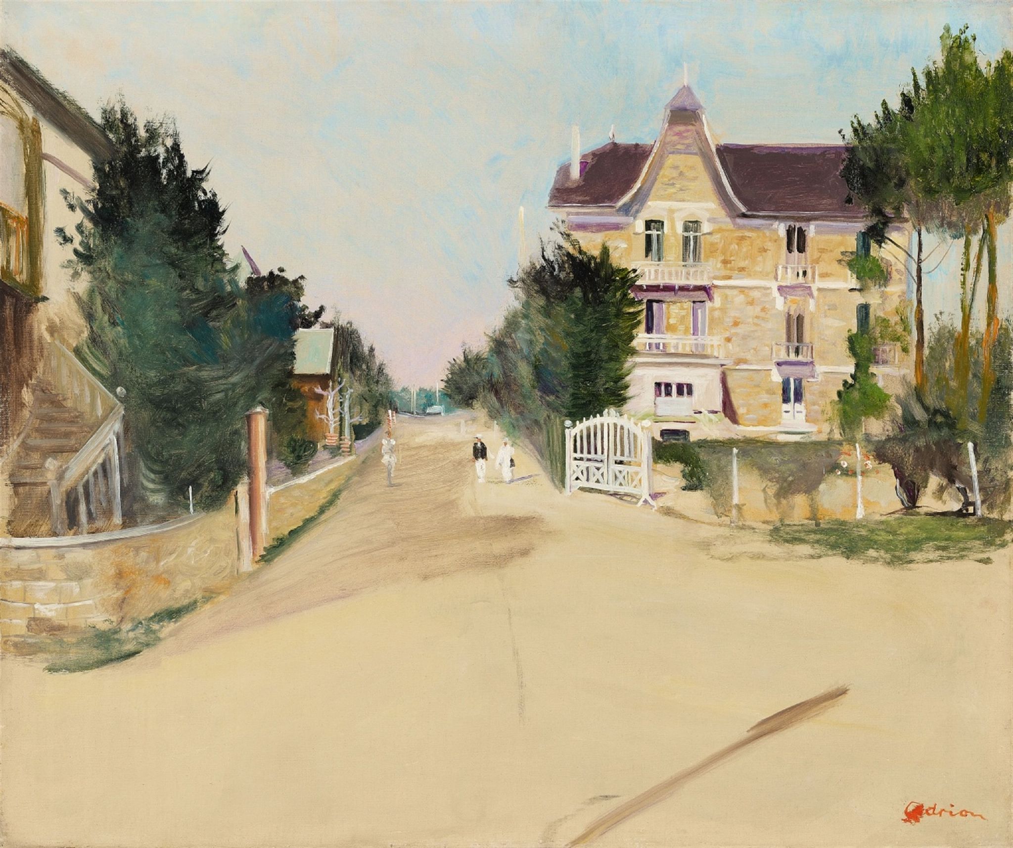 Untitled (Strasse in Bièvres mit Spaziergängern)