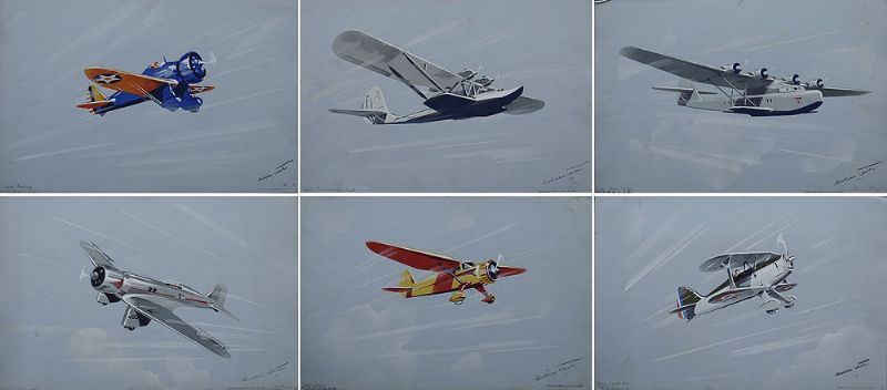 6 AVIATION ILLUSTRATIONS BY LUCIEN CAVE