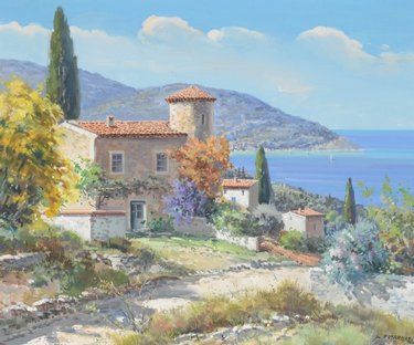 Riviera villa and coastal scene