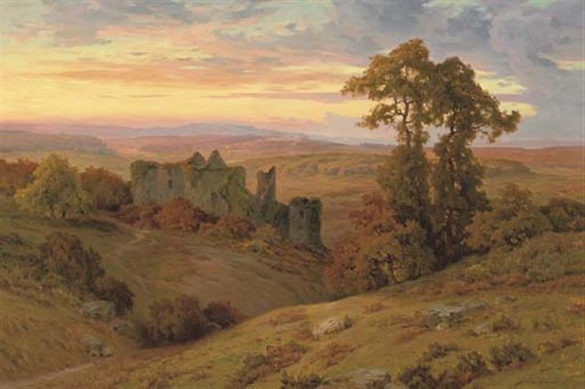 A castle ruin at dusk