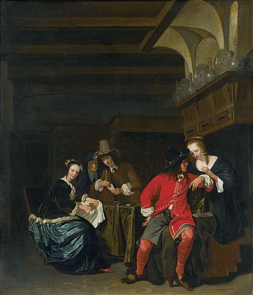 AN INTERIOR SCENE WITH CARD PLAYERS