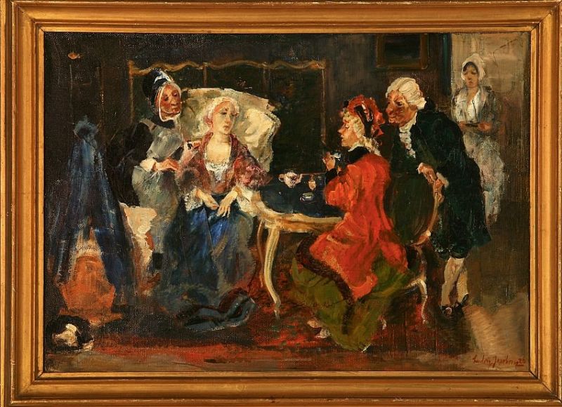 Scene from the comedy "Barselstuen" by Ludvig Holberg.