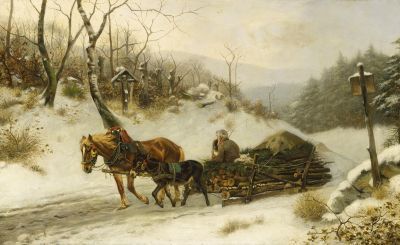 Forest in Winter with a Wooden Sleigh