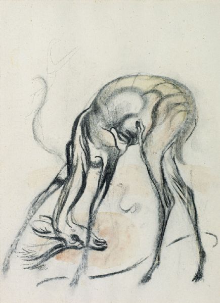Aus dem Nachlass. Rehbock mit gesenktem Kopf.