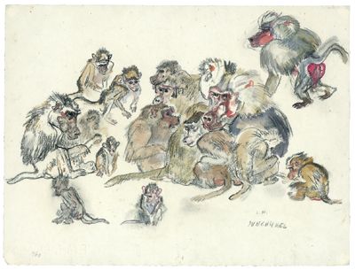 | Charcoal and chalk, water colour on paper, framed | |