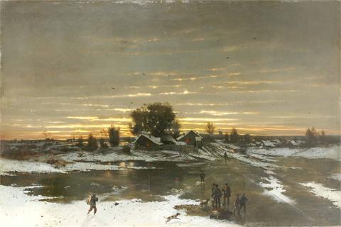 Düsseldorfer Maler, imposante Winterlandschaft im Abendlicht