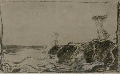 A mermaid and a woman on the shore