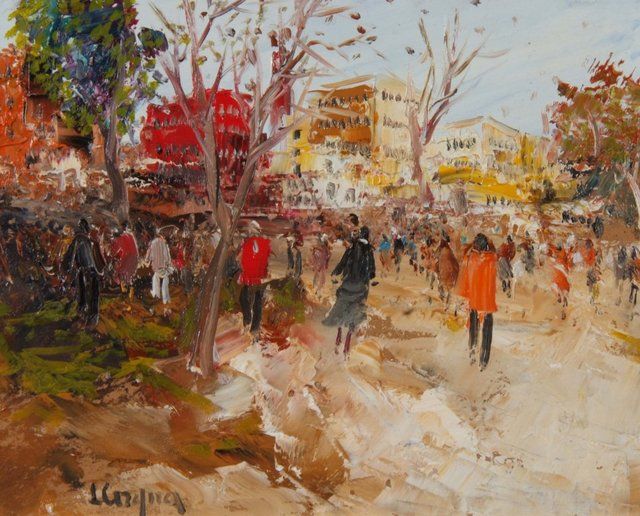 'Bancarelle a Parigi', impressionist view of a Parisian square