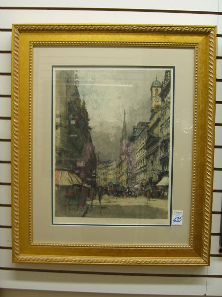 Etching in colors Vienna,wood framed