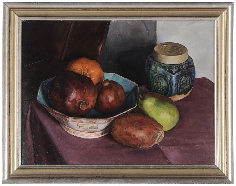 Pear, Pear Cactus and Pomegranates with Asian Ceramics