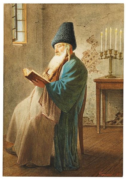 2 Blätter: Bauer und Pope in Interieur.