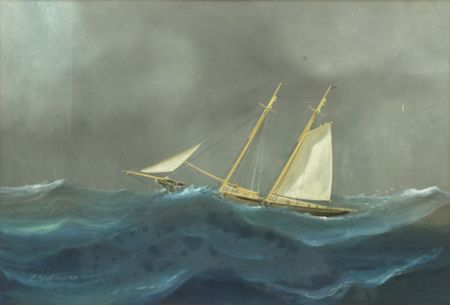 A SCHOONER WITH VESUVIUS IN THE BACKGROUND