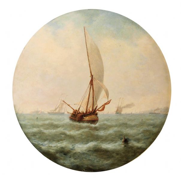 Barcos no Tejo entre o Bugio e o forte de S. Julião da Barra