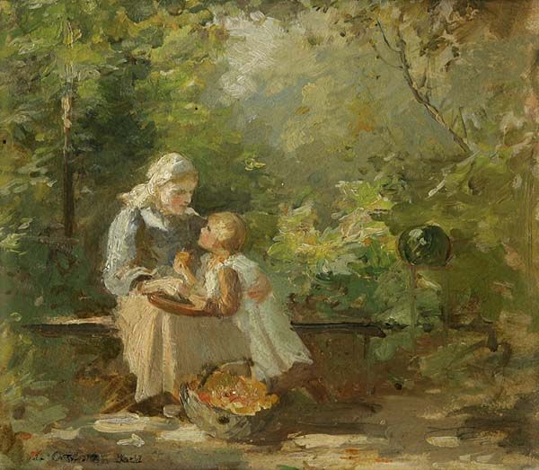 Junge Mutter mit ihrer kleinen Tochter am Waldesrand