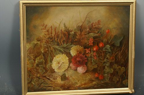 Still Life, Rosehips, Chrysanthemums and Foliage