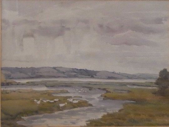 White ducks in an extensive estuary scene