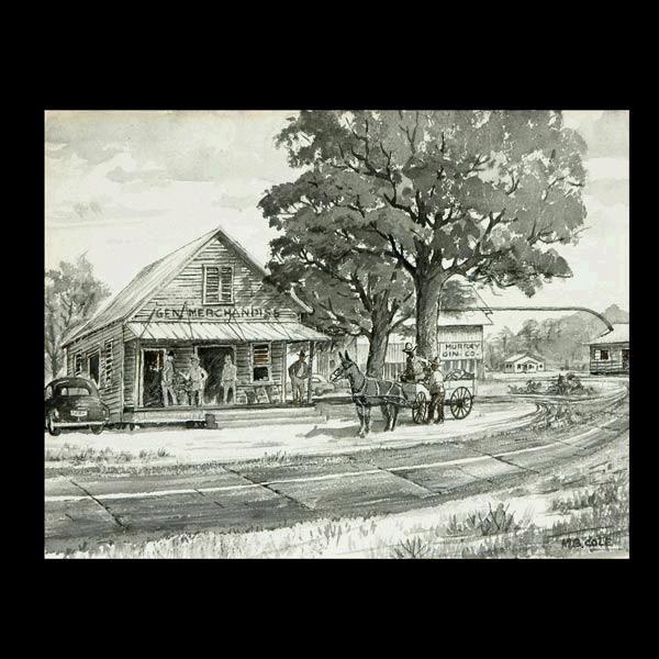 Figures outside the General Store