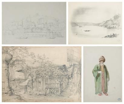 QUATRE OEUVRES SUR PAPIER CONCERNANT LA TURQUIE A - NOTABLE TURC AU TESBIH
