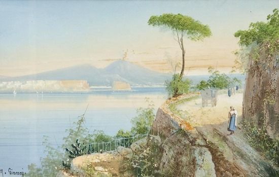 | View of Naples and Vesuvius from the South; Italian bay view, attributed to Gianni | |