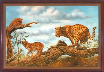 Leopard mit zwei Jungen auf einem Baum