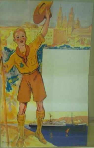 | Affiche avant la lettre pour la Cie MARITIME DES CHARGEURS REUNIS (Scout au loin Notre Dame de la Garde Marseille) | |