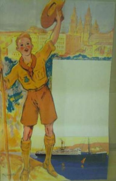 | Affiche avant la lettre pour la Cie MARITIME DES CHARGEURS REUNIS (Scout au loin Notre Dame de la Garde Marseille) | |