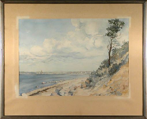 Blick über eine weite Bucht, im Hintergrund die Silhouette einer kleinen Stadt