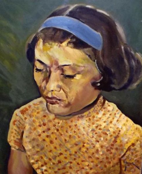 Head and Shoulders Portrait of a Lady wearing a Blue Hairband