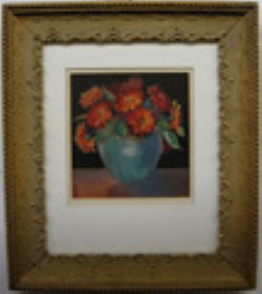 GERBERA DAISIES; ROSES IN A BLUE VASE