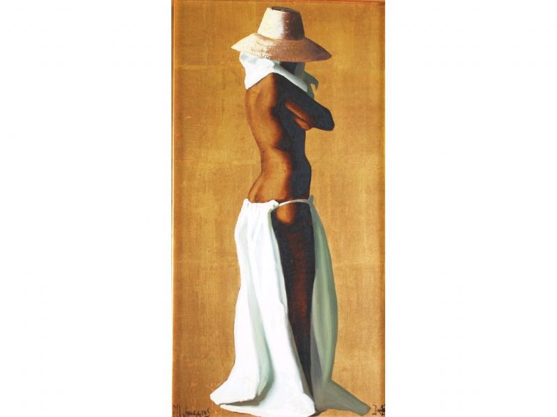 Study of a semi nude lady on a gilt ground