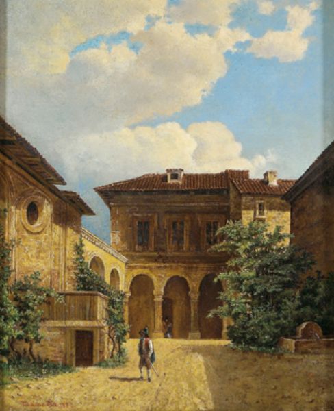 Inner Yard of an Italian Palazzo with Figurative Décor