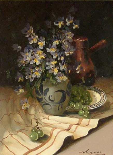 Blumenstillleben mit Weintrauben