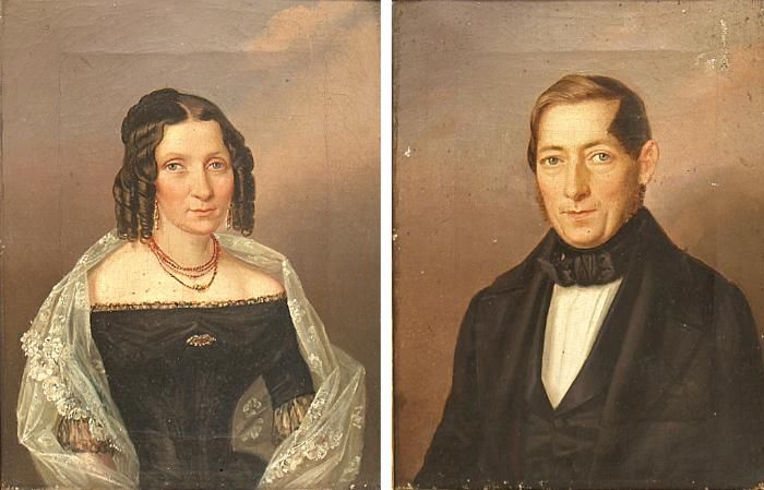 Pendants: Eleganter Herr und elegante Dame im Brustporträt