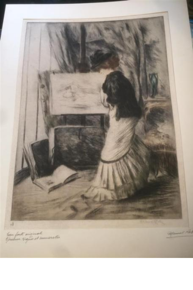 Eau forte et aquatinte en couleur sur Arches, signée en bas à droite et tampon sec en bas à gauche dans la marge.