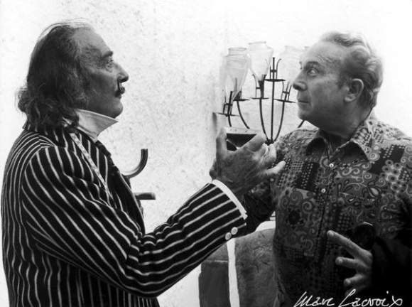 | Dali et Charles Trénet chantent la Marseillaise en catalan et trinquent les yeux dans les yeux, 1973. | |
