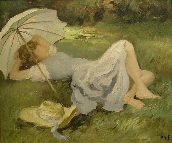 Femme a L'Ombrelle, Claudine under a parasol in a garden
