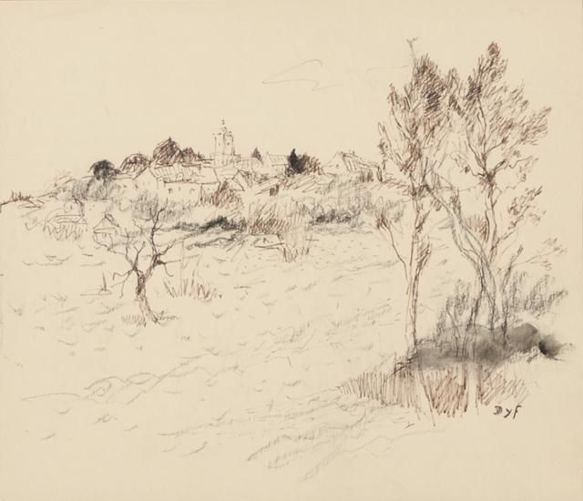 French country scene with distant village