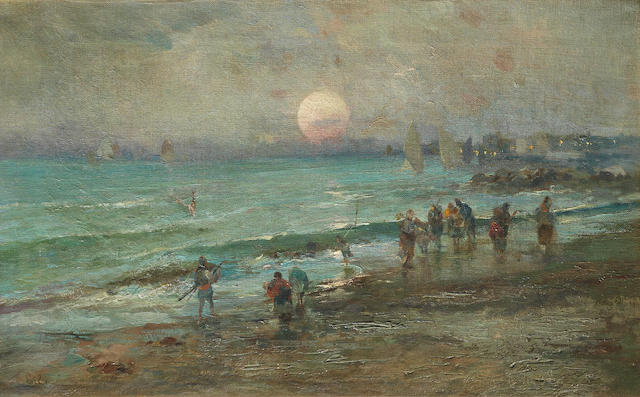 A beach scene; and A harbour scene