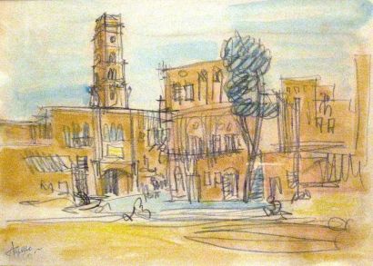 Pencil and watercolour
