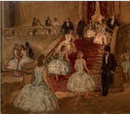 | Danseuses et homme en bas de l'escalier de l'Opéra | |