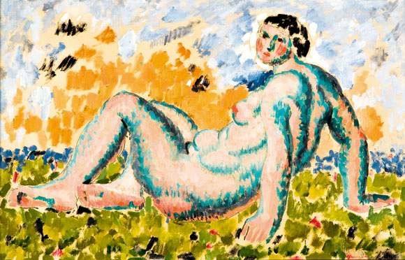 Jeune femme brune allongée dans l'herbe, circa 1920