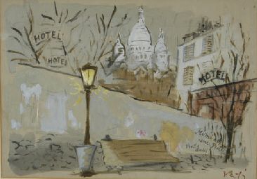 | Bench in Montmartre with views of the Sacré-Coeur in the distance | |