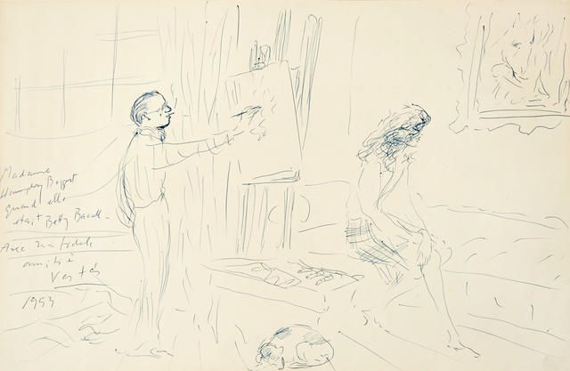 Marcel Vertès Painting a Portrait of Lauren Bacall