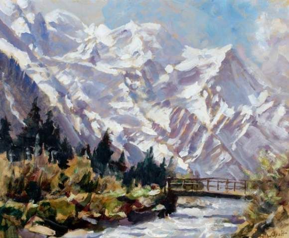 Mont Blanc dome et aiguille du Gouter sur l'Arve