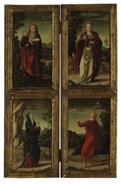 | Two wings of an altarpiece: Saint Anne and the Virgin Mary; and Mary Magdalene and Saint Peter | |