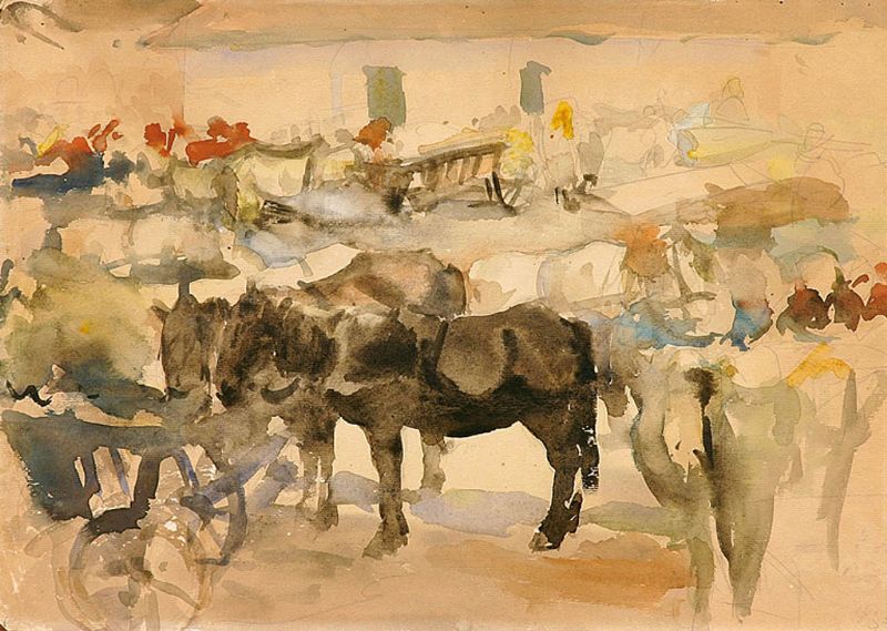 Watercolor over pencil on paper