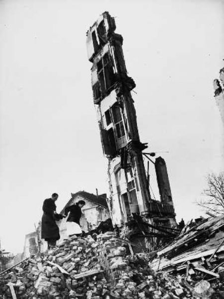 | ZIVILISTEN BAHNEN SICH IHREN WEG DURCH DIE RUINEN VON KÖLN 1945 | |
