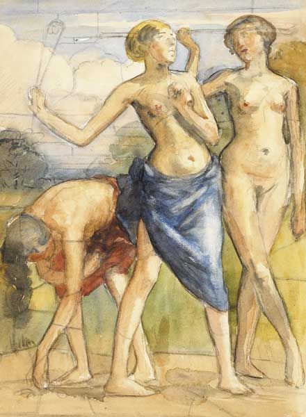| THE THREE GRACES, WITH CARTOON FOR STAINED GLASS WINDOW ON REVERSE | |