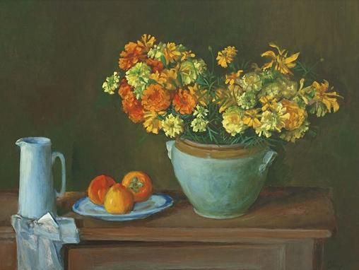 Still Life with Marigolds and Persimmons