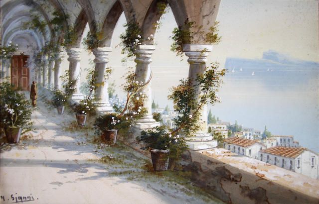 An Italian terrace overlooking the sea; A view of the Italian lakes